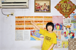墙上贴着的奖状,每个孩子都有。小俏踩在沙发上,指着自己的那张开心地对记者笑。深圳晚报青年记者训练营学员 代艳昀 摄