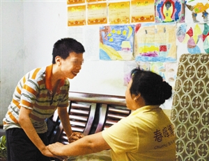 午后小辉和“妈妈”何华拉着手唱歌。小辉会唱《小苹果》《和你一样》,虽然吐字不清晰,但在妈妈面前他还是唱得很开心。深圳晚报青年记者训练营学员代艳昀 摄