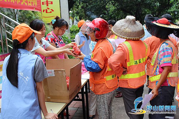 下午如期完成了150人份的粽子量,四点半左右,洁亚清洁有限公司驻龙田社区的环卫工人齐聚中心门口,中心社工引导环卫工人填写“环卫工人健康问卷”,众膳坊“妈妈”为他们派发粽子,为他们送上节日的问候,阿姨、叔叔们连声说:“谢谢你们,第一次领到别人发的粽子”。在做问卷的过程中,社工问他们对社会和政府的期待是什么?他们回答说:“希望提高他们的工资待遇,其次希望居民能够体谅他们的工作,相互理解”。朴实的话语深深感动了社工,在此呼吁社会能够理解和体谅环卫工人的艰辛。