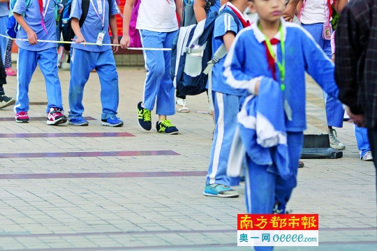 11月23日,龙翔学校的学生正在排队放学。 南都记者 霍健斌 摄