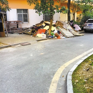 ▲记者看到南油生活区的街道垃圾露天堆放。