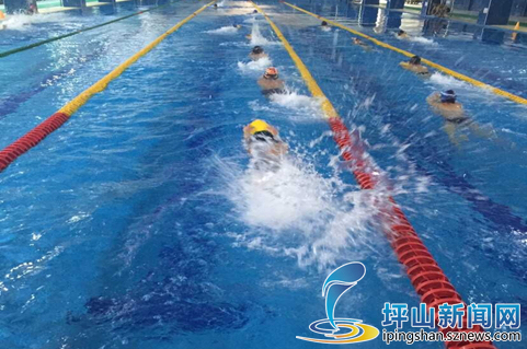 坪山高中现有一座体育馆,内设有50米泳道的室内恒温游泳池,成为游泳训练的重要场所,为发展游泳项目、创建体育特色奠定了重要基础。该校于2009年提出“让坪高每一个学生都学会游泳”的目标,并开始组建游泳队,进行长期有计划的训练。同时在全校逐步推广开来,高一、高二年级开设游泳课作为校本课程,聘请优秀的专业游泳教练进行授课指导。学校研发出一套《游泳》特色教材,主要教学内容为蛙泳,学生学习20课时后参加考核,计入必修学分,走出一条游泳教材校本化的道路。