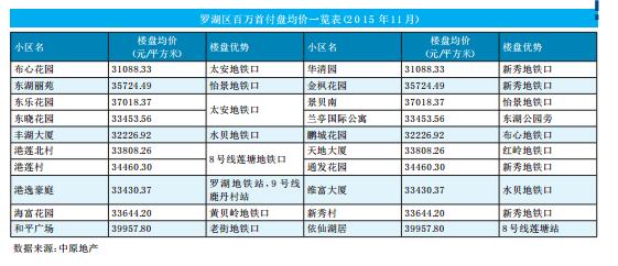 11月,罗湖二手房价刚刚突破了4万元/平方米,区域有大量 “3字头”的楼盘,主要集中在布心、莲塘、人民南路和桂园等片区。如太安地铁口布心花园二手均价为3.1万元/平方米,是罗湖地铁口物业中,价格较低楼盘。新秀、布心地铁口的华清园、鹏城花园的价格尚停留在3.1~3.2万元/平方米。(深圳商报记者 陆剑伟)