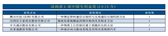占全国发明、实用新型专利金奖奖项的20%;深圳还有42项专利获得中国专利优秀奖,6项专利获得外观设计优秀奖