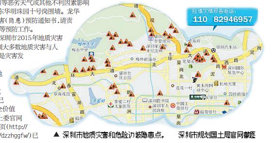 深圳市地质灾害和危险边坡隐患点。深圳市规划国土局官网截图