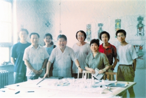 1992年,一众规划师在北京讨论福田中心区规划,图右二为朱荣远。