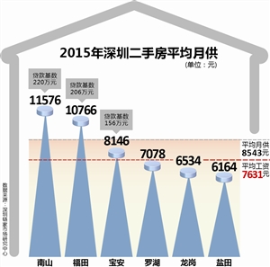 2015年即将过去,如果你已经成功置业,想必资产也随着房价的大幅上涨变得更加可观,还款感觉到压力大吗?有研究机构表明,深圳每套房产的平均贷款为163万元,平均月供为8543元,超过了有机构统计出来的全市平均工资7631元,月供明显高于收入。究竟是庆幸成了业主,还是背上了还贷的重壳,这也只有购房者自己知道了。