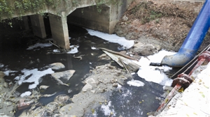 ③ 2015年12月29日,上沙村排入深圳湾的排水渠,水质发黑,散发臭味。
