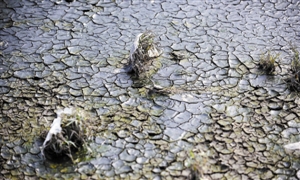 沙井河上游段,被污染的河床在太阳的直射下似乎干裂了,犹如被剥掉的层层死皮,触目惊心。深圳晚报记者 汪阳 摄