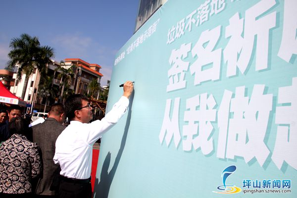 深圳新闻网坪山讯(记者 杨涛 通讯员 黄如业)12月11日下午,坪山新区坑梓办事处在金田丰华苑广场隆重开展坪山新区现代市民培育工程之“人民路垃圾不落地示范街创建启动暨万人签名活动”。坑梓办事处宣传部、城管办(执法队)相关负责人现场发出号召,市民代表、商户代表、环卫工人代表、办事处及社区工作人员代表等签名响应,自觉承诺爱护环境卫生,共建美丽坑梓。
