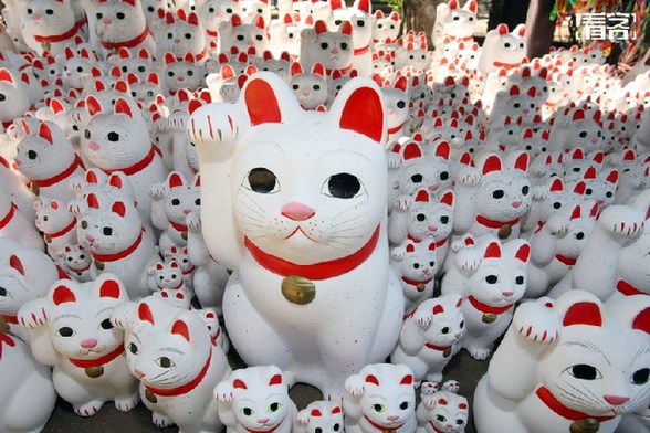 在相对推崇含蓄内敛的日本社会,吉祥物作为一种对世界感性认知的表达和审美趣味的展现,给人们提供了一个宣泄及寄托情感的出口。招财猫,是日本“猫文化”的影响下最常见的偶像摆设,也是在世界范围内传播最为广泛的日本吉祥物之一,人们认为它可以招财招福,其故事传说可以追溯到四百多年前的江户。图为当地时间2015年5月22日,日本东京, Gotokuji寺庙被大大小小的招财猫“占领”。