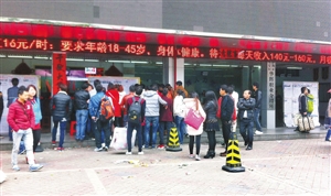 昨天,记者在宝安区的一家职介所看到求职者熙熙攘攘。