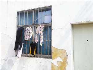 南山区一工厂违规住人,窗台上晾晒着衣物。深圳晚报记者 崔晓丹摄