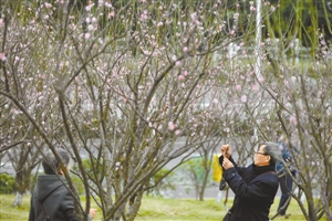连日来深圳低温天气不断,但在北环大道红岭中学高中部路段的一处梅园里,数十棵梅花树上的梅花迎着寒风绽放,美不胜收。不少市民路过此处都停下脚步,一赏梅花美景。