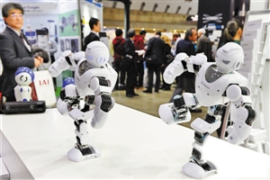 2015年12月2日,在日本东京国际展示场,深圳优必选科技公司演示会跳舞的机器人。新华社发