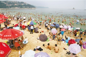 大梅沙节假日期间人头攒动,需加强公共安全防范。