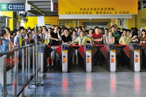 深圳民乐地铁站在上下班高峰期人流量大,需要时会实行临时客流管理。本版摄影:深圳商报记者 林晓斌