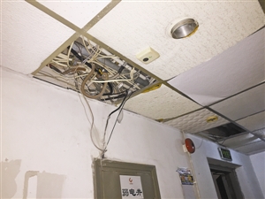 大厦内多处电线裸露让居民颇为担心。