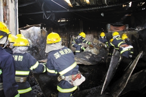2013年12月,光明新区公明办事处荣健农副产品批发市场发生重大火灾。图为消防官兵在现场营救。(资料照片)
