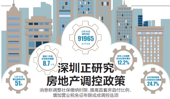 与此同时,有消息称深圳将收紧非深圳户口的购房资格,社保缴纳时间将从目前的1年改为3年,同时首套房首付比例也将提至40%。另外有消息称还包括将营业税免征由两年改为五年。