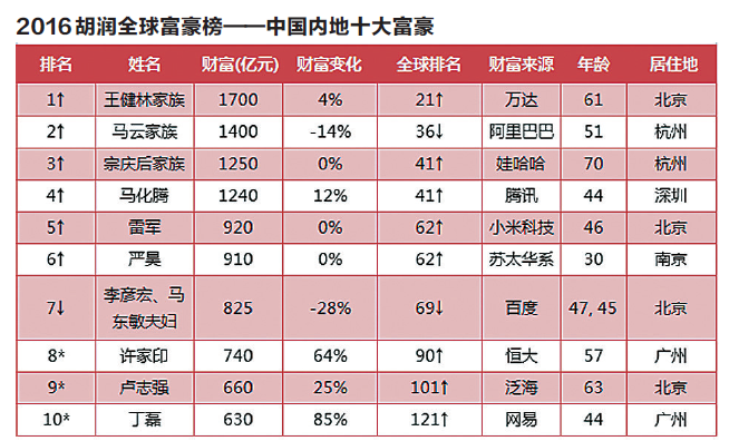 《2016胡润全球富豪榜》发布,深圳上榜富豪46人,全球排第七