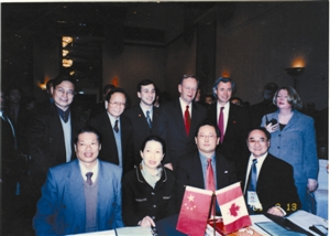 2001年,在北京中国大饭店举行深圳南山中加学校办学协议签字仪式。