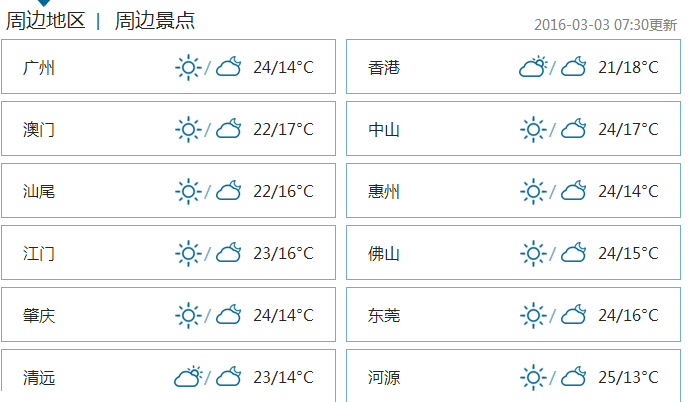 今日,鹏城仍以晴间多云的天气为主,部分时间仍会出现轻微到轻度灰霾,多数区域最低能见度在10公里以内,应注意预防呼吸系统疾病。早晚天气稍凉,最低气温维持在14℃左右,白天阳光较为充足,最高气温在24℃左右。昼夜温差较大,应注意预防感冒。