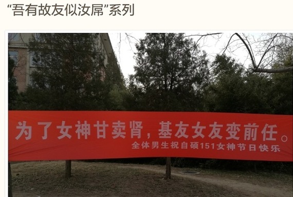 清华大学悬挂横幅喜迎3.7女生节