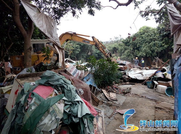 深圳新闻网坪山讯(记者 史韬 邱嘉熙 通讯员 余育林 彭尚辉)日前,坪山执法队联合社区、公安等部门动用重型器械,拆除碧岭厦深铁路临时余泥渣土受纳点边坡乱搭建窝棚10个,面积约800平方米,窝棚居住人员也全部疏散完毕。