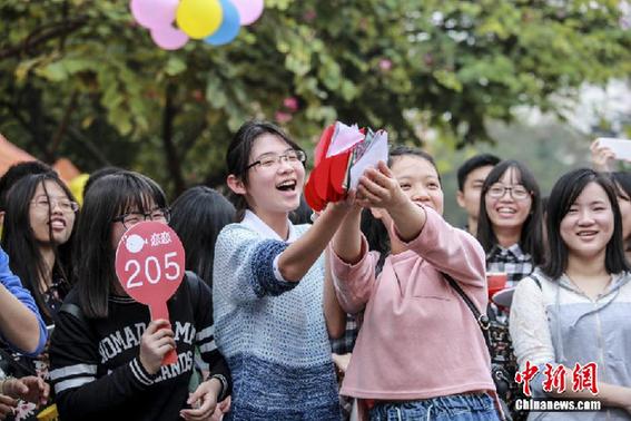 3月6日,华南师范大学“女生节”上,“竞拍男生”活动受女学生欢迎。当日,华南师范大学在校园内举办“竞拍男生”等活动庆祝“女生节”,女学生通过虚拟货币“竞拍男生”,与心仪的男学生互动。中新社记者王庆然 摄