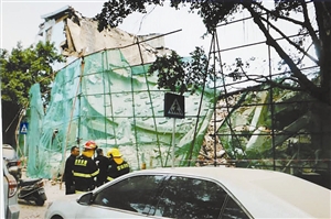 破拆施工不慎导致倒塌,幸无人员被困。图片由宝安消防部门提供。