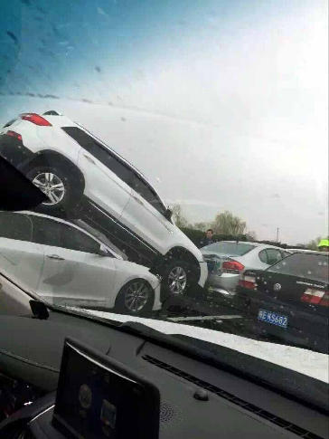 3月8日早上,受寒潮影响,南京雨水不停,宁马高速南京方向的板桥附近,发生九车连环相撞事故,其中一辆SUV被后面追尾的轿车完全顶起,造成道路拥堵。目前,事故原因交警仍在调查中。