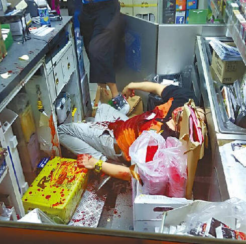 香港一家便利店8日晚发生血案,中年男店主发现南亚裔窃贼在店内偷薯片,报警时,遭手持利刃的小偷大骂。店员与小偷爆发冲突,小偷用刀直插店主胸口,刀锋直插体内4寸以致店主性命垂危。小偷拔刀逃脱,警员到现场将事主送医抢救,伤者目前情况危殆。警方根据闭路电视画面通缉嫌犯。