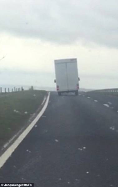 重型卡车被大风吹翻全过程