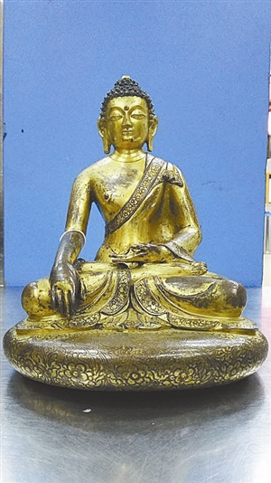 皇岗海关查获4尊精美铜鎏金佛雕