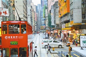 非高峰期,香港一马路上车辆较少。深圳晚报记者 张玥婷摄