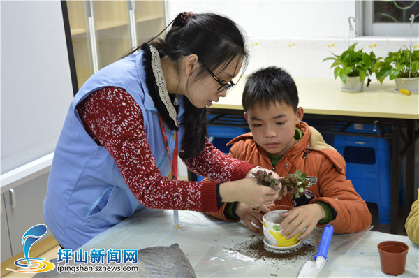 社工教导小朋友如何种植