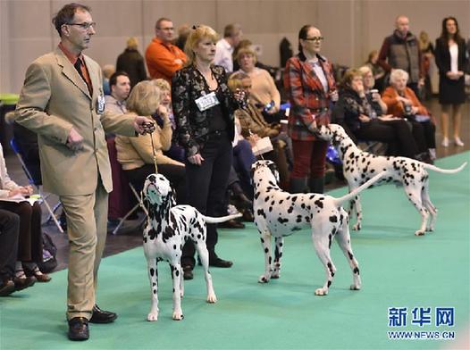 3月10日,在英国伯明翰,狗主人和他们的大麦町犬参加克鲁弗兹狗展首日的活动。一年一度的克鲁弗兹狗展始于1891年,以发起人查尔斯·克鲁弗兹的姓氏命名,是世界上规模最大的狗展。1991年,在克鲁弗兹狗展100周年之际,举办地由伦敦迁至伯明翰。新华社发(雷伊·唐摄)