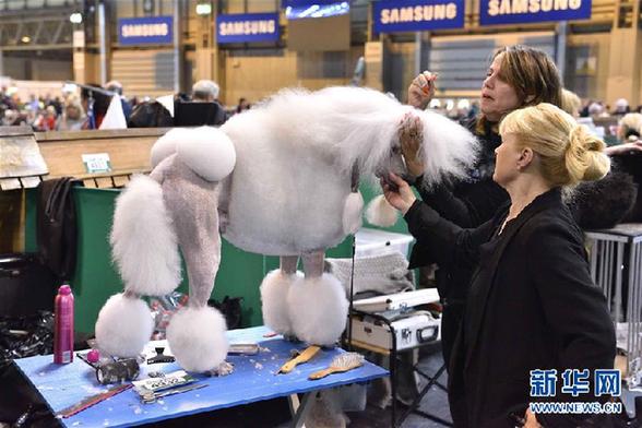 3月10日,在英国伯明翰,一只贵宾犬站在梳毛桌上,准备参加克鲁弗兹狗展首日的活动。一年一度的克鲁弗兹狗展始于1891年,以发起人查尔斯·克鲁弗兹的姓氏命名,是世界上规模最大的狗展。1991年,在克鲁弗兹狗展100周年之际,举办地由伦敦迁至伯明翰。新华社发(雷伊·唐摄)