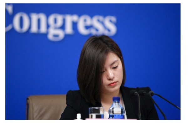 2014年3月5日下午3时,美女翻译成为了记者镜头竞相追逐的焦点。图中翻译为姚梦瑶。