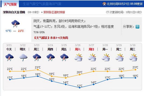 记者从市气象台获悉,清劲的偏东气流带来了较为干燥的空气,湿度下降,预计本周多降雨天气,后期降雨趋于频密,潮湿天气要持续到25日前后,不过“回南天”现象将逐日缓解。
