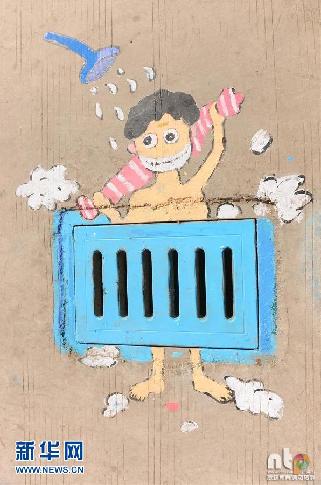 为迎接世界爱水日 安徽一幼儿园井盖涂鸦倡导节水