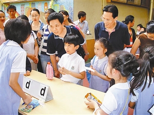 另外,我们还对教室的安排了不同调整。采用小组教学的模式,不搞秧田式排列,班主任的办公桌搬到教室里面,跟同学生活在一起。后来经过实践,到第二个学期,初见成效。首先就是学生在课堂上发言的机会多了,学生与学生间的交流多了,学生的自信以及学习积极性也得到提高;其次由于学习是小组形式,课堂气氛相对轻松活跃,学生跟老师的距离明显更近了。班主任就在课堂办公,可以亲眼看到学生的变化,这也给老师增强了信心。罗湖小学在进行一系列的探索之后,收到成效,引起较大反响,中国教育报、中央电视台等媒体曾先后对此进行采访报道。