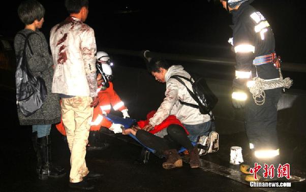 3月23日,京昆高速四川广元段发生一起严重的多车追尾交通事故,造成7人死亡,6人受伤。目前,伤者已被送往当地医院救治,现场处置等工作还在进行,事故发生具体原因高速交警正在调查中。图为车祸中的一名受伤者被成功救出。廖鑫 摄