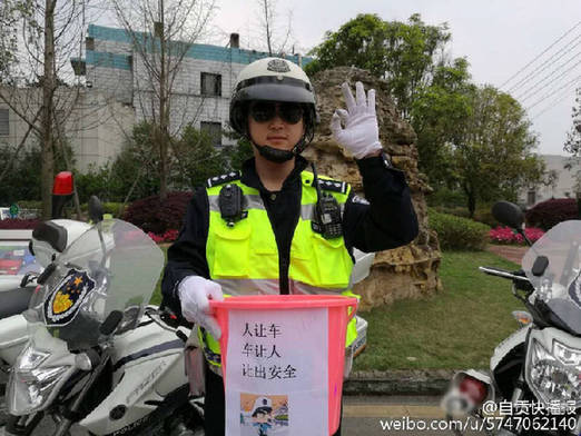 为了宣传道路交通安全,自贡交警也是蛮拼的。