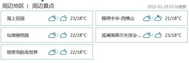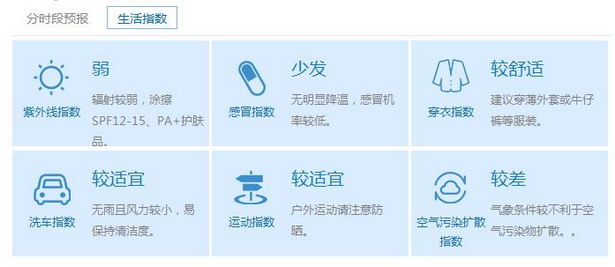 气温与昨日如出一辙,早晚的最低气温在15℃左右,白天的最高气温将升至23℃左右。昼夜温差较大,大家应注意预防感冒。清晨可能出现轻雾,空气质量不佳,应注意预防呼吸道疾病,轻雾消散前不适宜晨练。空气湿度增高,最小相对湿度为45%,最大湿度85%,干燥天气逐渐缓解。