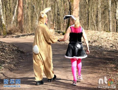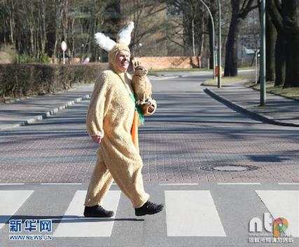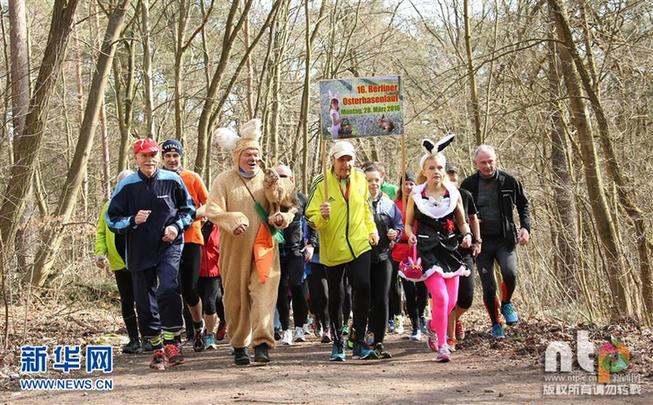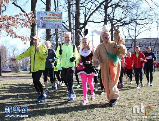 3月28日,德国柏林举行2016兔子跑活动,活动起点和终点都设在Mommsentadion 体育场,中途在 Forsthaus Grunewald 停留带上蛋液和复活节蛋糕。新通图/imago/nph(声明:凡带有“ntp”水印的图片,系新通图版权图片,受法律保护,使用(含转载)需付费,欢迎致电购买图片:010-88050891或010-88050717)