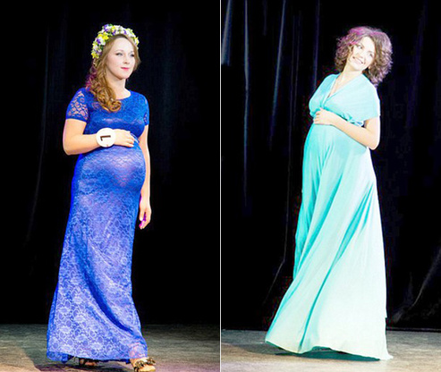 俄罗斯举办怀孕妈妈选美大赛 24岁准妈妈阿列娜·伊萨耶娃(左)夺冠(网页截图)