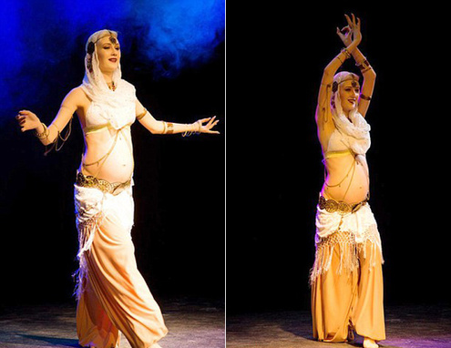 参加比赛的准妈妈选手表演肚皮舞,惊艳四座。(网页截图)