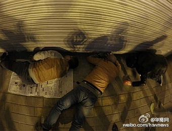 据华商网报道,3月29日晚,在陕西省体,国足VS卡塔尔的赛事进行的如火如荼,场内喝声阵阵。场外,十几名没有购票的陕西球迷,他们将报纸铺在地上,躺着通过门缝艰难而紧张的观看场内的动态!